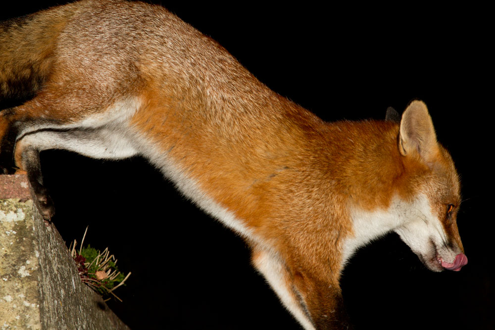 | 0111123110121558 | Male fox (Vulpes vulpes) in thick winter pelt leaping from a wall. | ||||||||||||