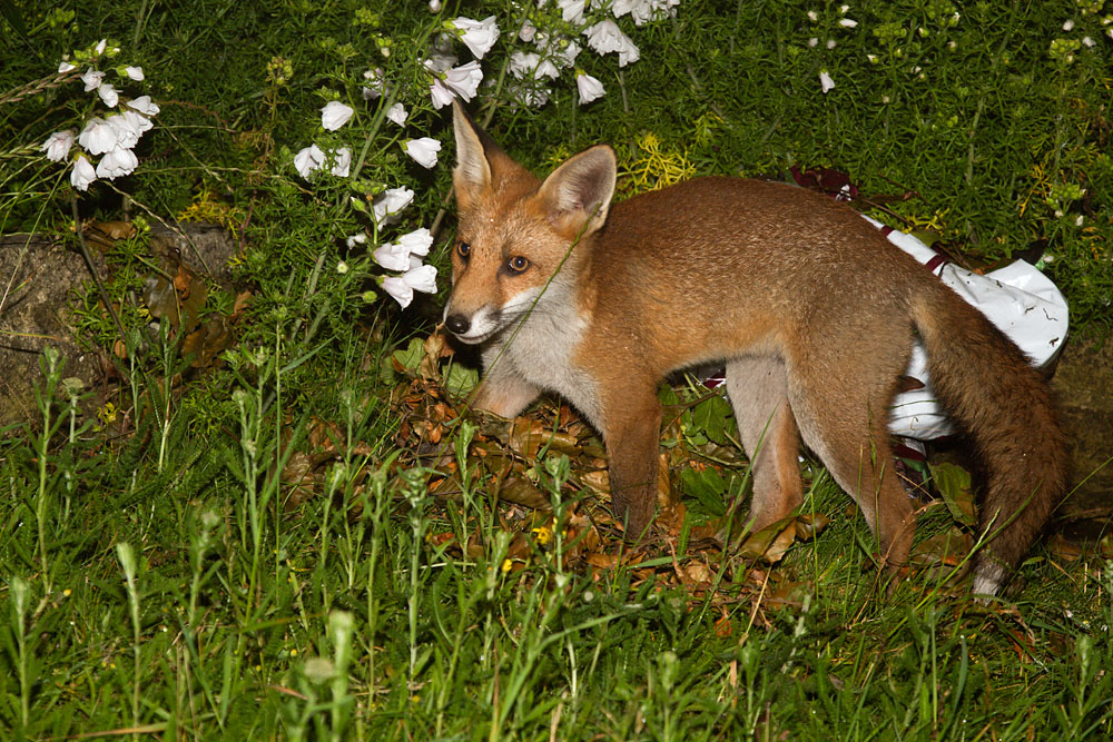 | 0202130407127975 | Fox cub (Vulpes vulpes) in the corner of an overgrown garden. | ||||||||||||