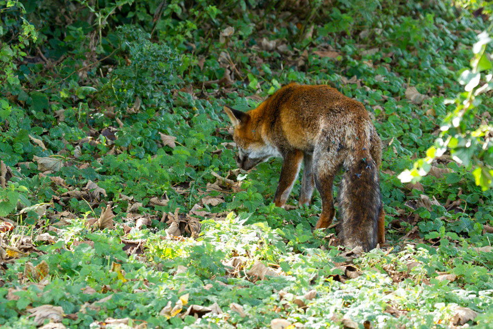 | 0510120410127523 | Wild male fox in churchyard at Falmer, East Sussex, showing signs of fly strike. | ||||||||||||