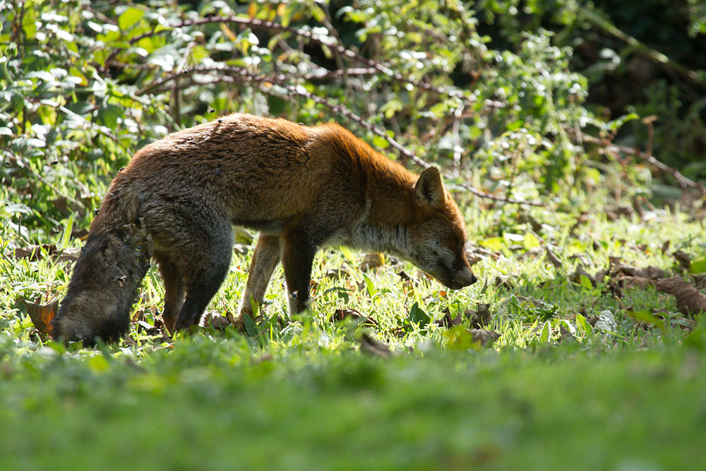 | 0610120410127470 | Wild male fox in churchyard at Falmer, East Sussex, showing signs of fly strike. | ||||||||||||