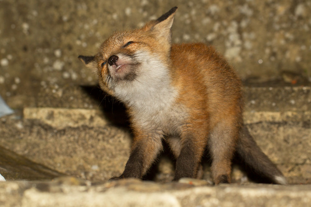 | 0705130605133712 | Young fox cub (Vulpes vulpes) shaking its head vigorously against stone wall background. | ||||||||||||