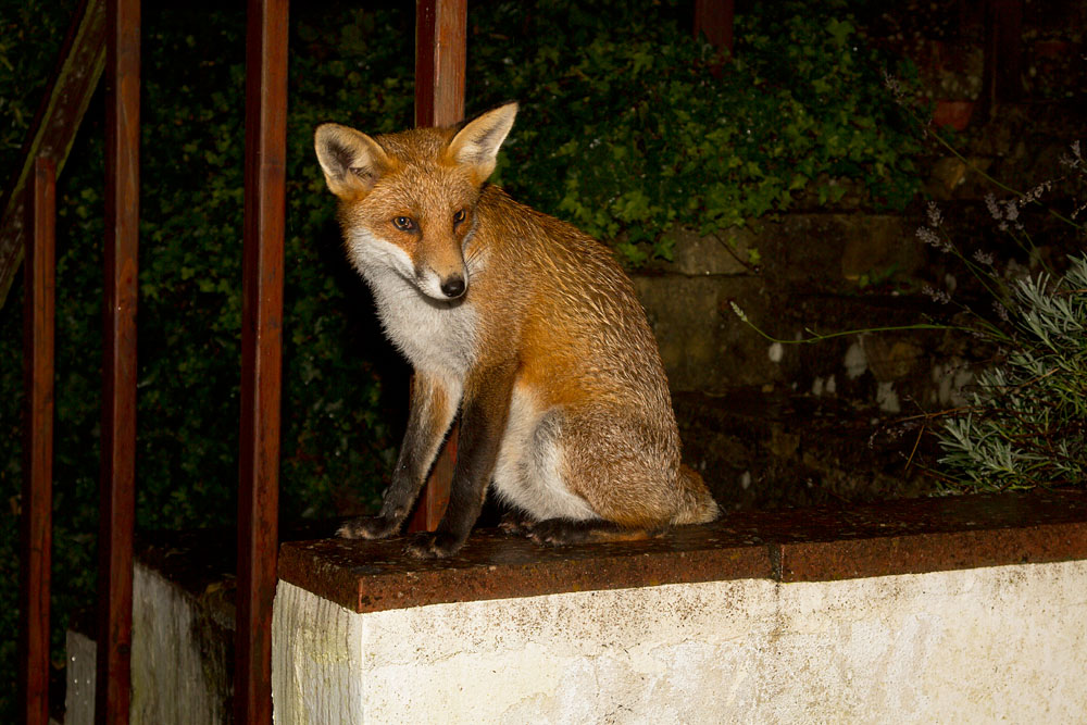 | 1110120910128663 | Juvenile male fox sitting on garden wall in East Sussex. | ||||||||||||