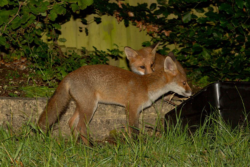 | 1304132406125934 | Fox cub (Vulpes vulpes) pair in the corner of a garden. | ||||||||||||