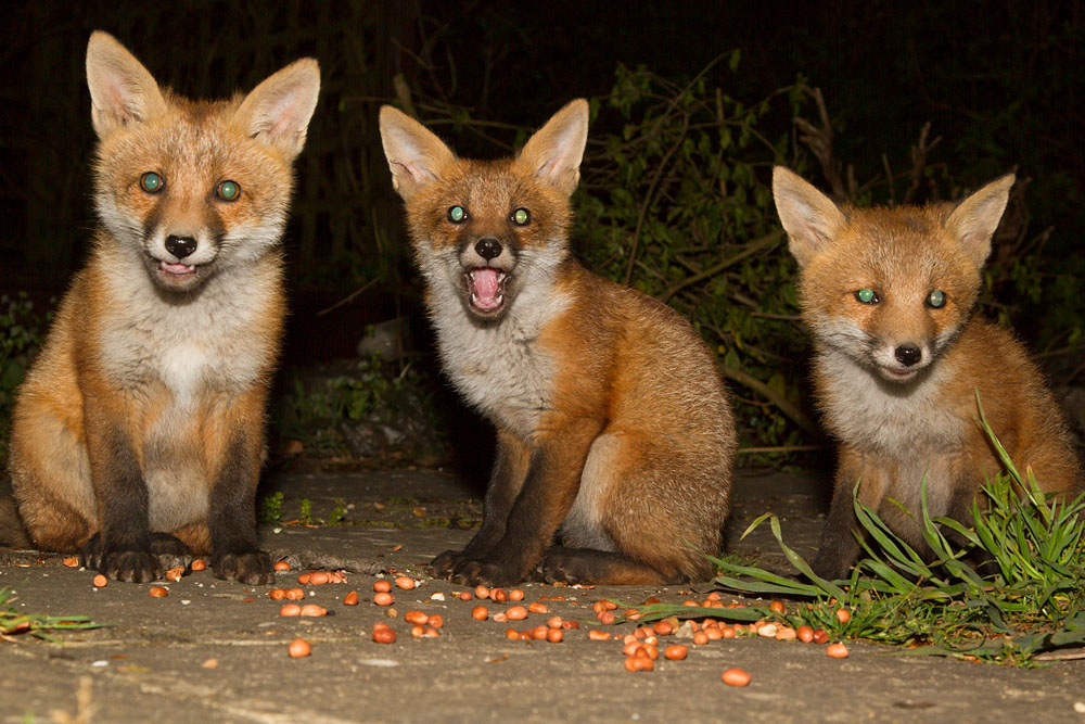 | 2405132305137947 | Three fox cubs eating peanuts in a suburban garden | ||||||||||||