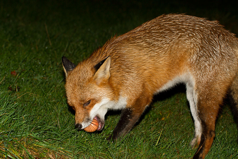 | 2611122411125408 | Fox (Vulpes vulpes) carefully picking up an egg from a Sussex garden. | ||||||||||||
