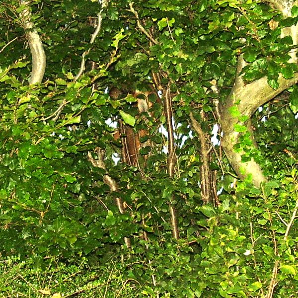 I failed to get a shot of it, but it became obvious that the target was a nest. The fox emerged at one point with a small white egg in its mouth (likely to be a wood pigeon's egg... there's a healthy population of them here). Eggs are a particular favourite. | |