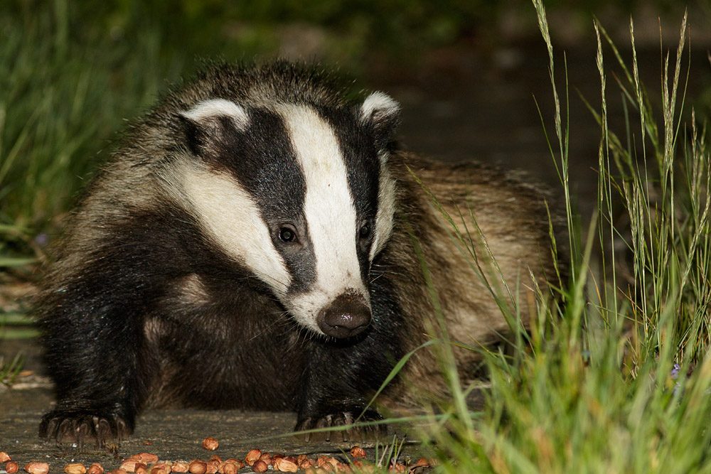 After several years (almost a decade) of foxes dominating the garden, 2015 turned out to be the year of the badger (Meles meles). Three badgers have been visiting, though only two of them feature in these photos. A smaller badger, and the more dominant one (male?) who has some distinctive thinning of the coat on his (?) front left leg.