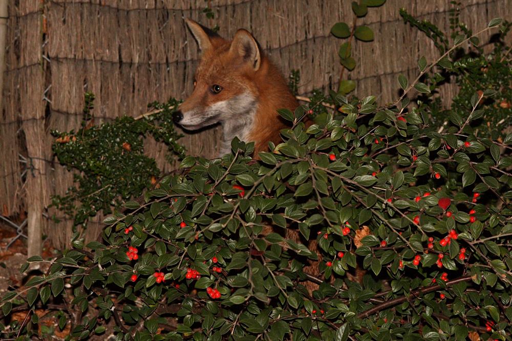 There hasn't been too much news to report on the foxes. The young male (now 8 months old) is still around, and still coming into the garden at night. His companion – with the white tipped brush – is still lurking on the far side of the fence out of sight (but not out of hearing). As for the fireworks, they don't seem to have caused too much disturbance, and on Monday night I spent about 10 minutes out in the garden with the fox while loud bangs were going off overhead. He's less keen though on the whooshing fireworks and tended to shelter in a corner when they exploded. As for the flashes, I think they're so used to the camera flash firing that they probably don't even notice them. That said, it was relatively quiet as these things go, with most of the action several gardens or streets away.