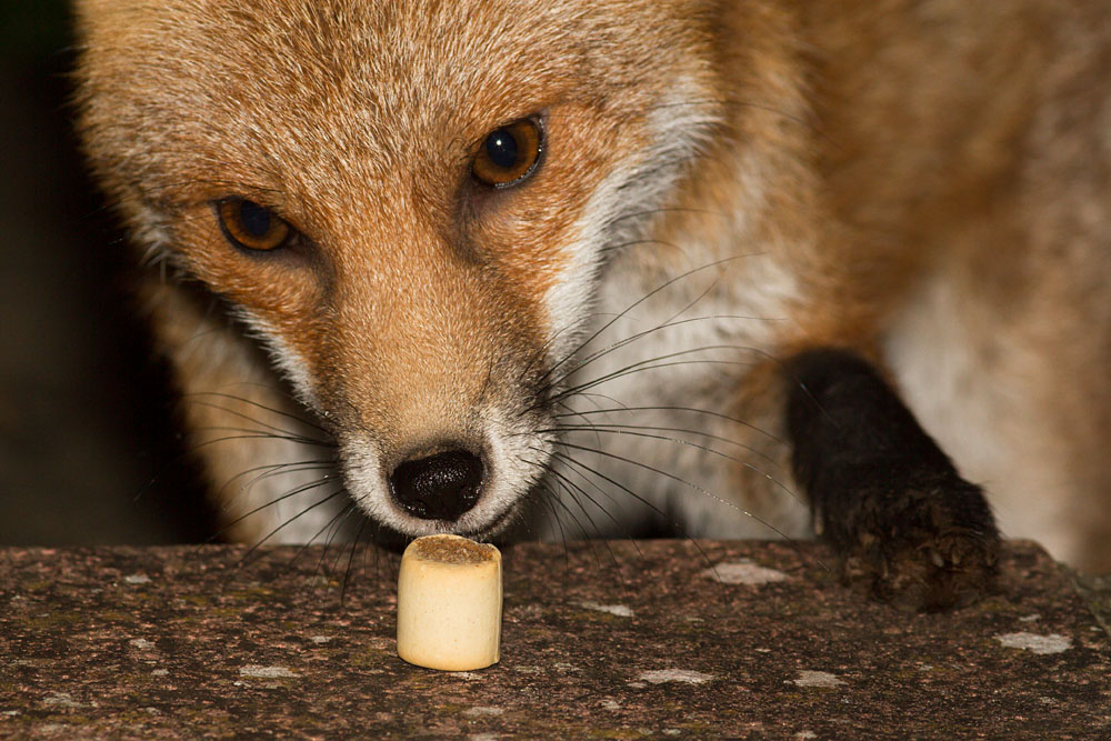 A short post tonight, with a food theme. First a couple of close-up shots of Pretty, helping herself to a markie biscuit from the garden wall. Just look at her eyes in the second shot. She’s a greedy little fox.