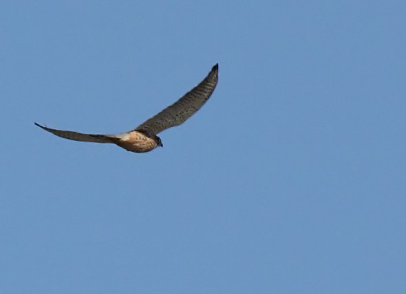 The most unusual sighting though was overhead. I caught a glimpse of a bird that didn't look 'right'. It wasn't a gull, or a cormorant or a pigeon. It was what I think must be the first raptor I've spotted in the centre of London. I am much more used to seeing these in downland or coastal areas, so it was something of a surprise. The photo was grabbed and is a full-size crop. My first thought was a juvenile peregrine (they nest at the Tate Modern and the very direct flight/swoop over the Thames seemed appropriate), but it is also suspiciously kestrel-like. I don't have a confirmed i.d. for this one. Raptor over the Thames