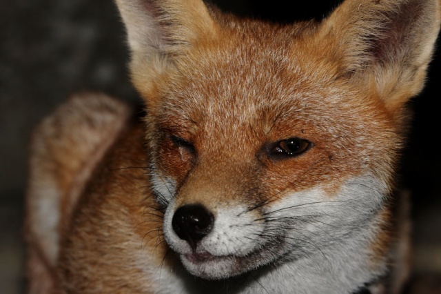 And so to the garden. Bold was back. Her leg is improving (though she still carries it a lot of the time); but she seems to have acquired a second injury, this time around her right eye (it was partially closed). I couldn't see any obvious damage, and the photos I got are inconclusive as to the extent. The Bold Vixen with injured right eye
