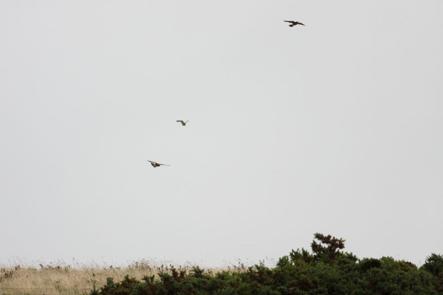 This afternoon brought a different kind of surprise. We'd headed out to one of the local walks (Castle Hill), an area of scientific interest. It's renowned for butterflies and wild flowers. I've been there before, but as we entered one of the valleys I looked up to the brow of the Downs and to my amazement a string of kestrels were out hunting. There were at least six or seven in the air, a veritable flock. I'm used to seeing two or three together, but have never seen quite such a gathering. I presume there were young kestrels among the adults. Plus, it turns out when I checked back on the photos, one was actually a sparrowhawk :doh: