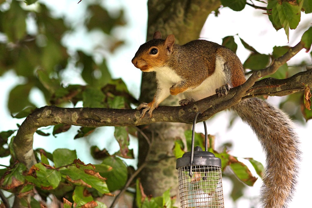 One of the less familiar faces in the garden is the squirrel. I do see them every now and then, but usually they are skittish and sightings are brief. Also they tend to 'hang out' on the bird feeder which is usually in deep shade. Today, however, one particularly greedy specimen decided that a peanut was indeed equal to the price of a photograph.