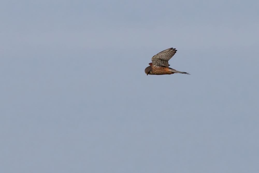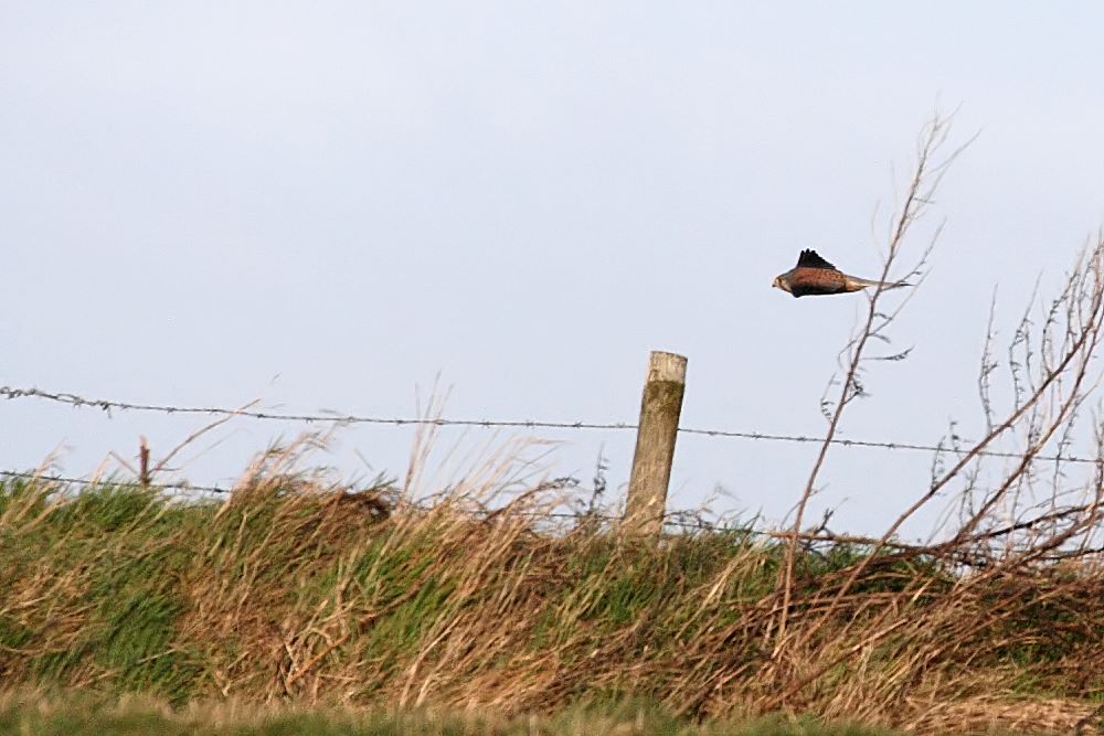 Yesterday of course I witnessed the sparrowhawk in hunting mode. Today was the turn of a kestrel. It was a short distance off, but it was going through the hover/swoop routine.