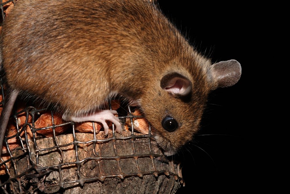 This evening I was able to add to the Wood Mouse files. The mouse was being quite bold, darting from the feeder up into the trees, and back again. I tried to get some shots of it in the trees, but it was either showing a rear view, or hiding behind branches. So here's one of it on the the feeder.