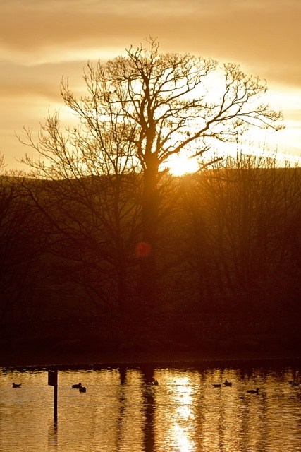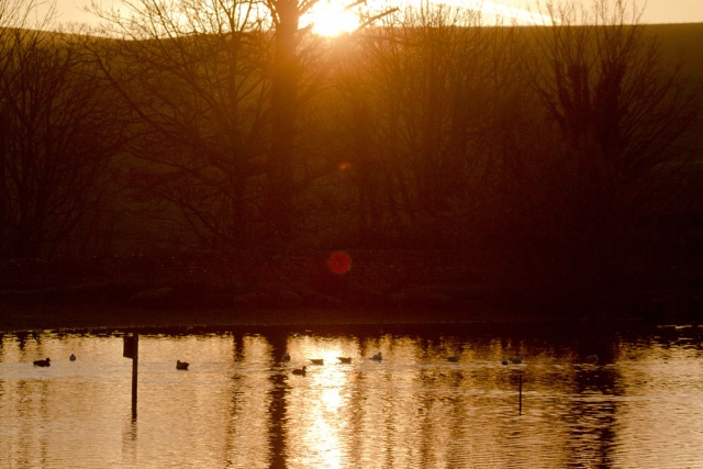 Not many photos today, but the first two give a better idea than yesterday's of how the sun appears over the eastern hills. The trees filter the light a little, but it is blindingly bright as it reflects on the water.