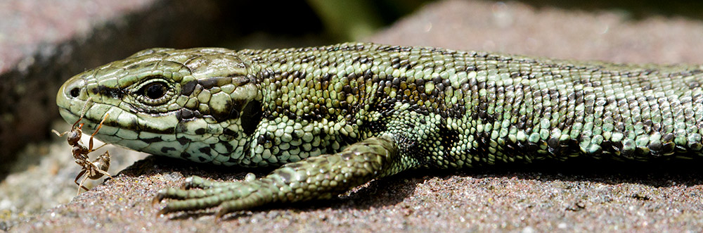 25 Jun 2016Very brave ant. Knowing that lizards eat small insects, I am surprised this one is still alive. Ants may not be on its menu, though…