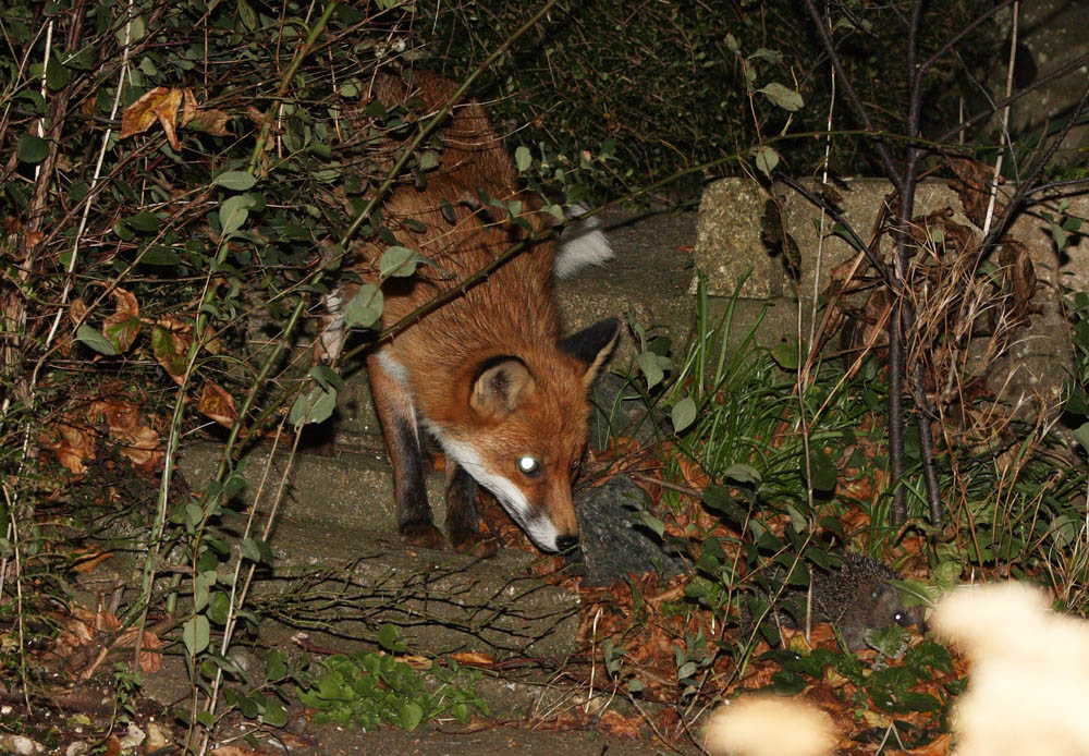 28 Oct 2008Nice shot of the vixen and the hedgehog together! I imagine that the hedgehog will be going to sleep fairly soon :zzz: