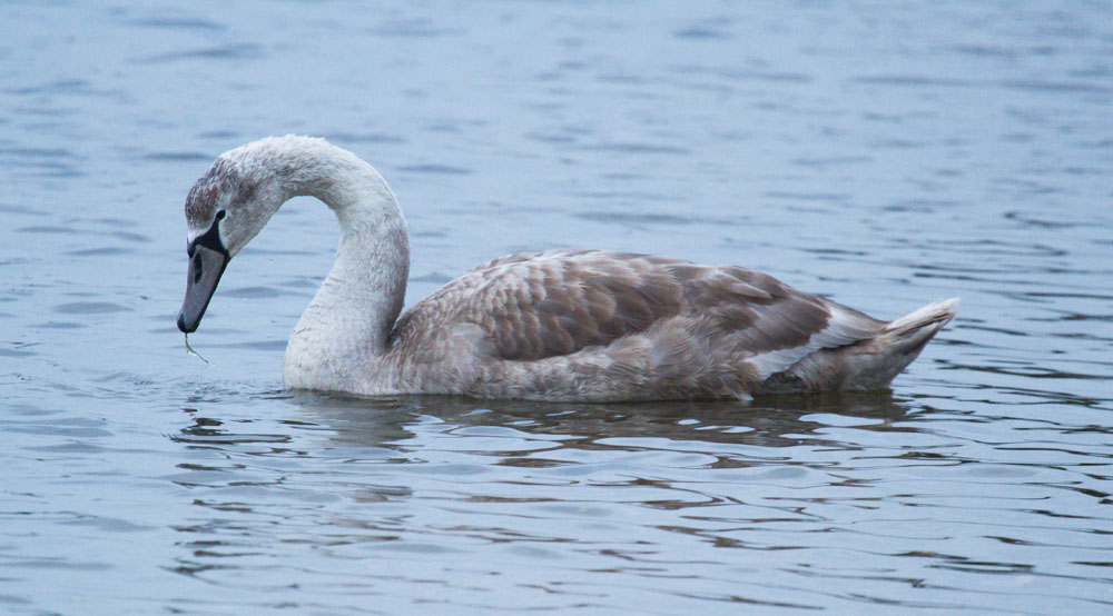 The South Downs were shrouded in mist again today. I stopped off at Seven Sisters early this morning. It had cleared a little, though a wispy mist was evident in patches. A juvenile swan was grazing in the meanders.