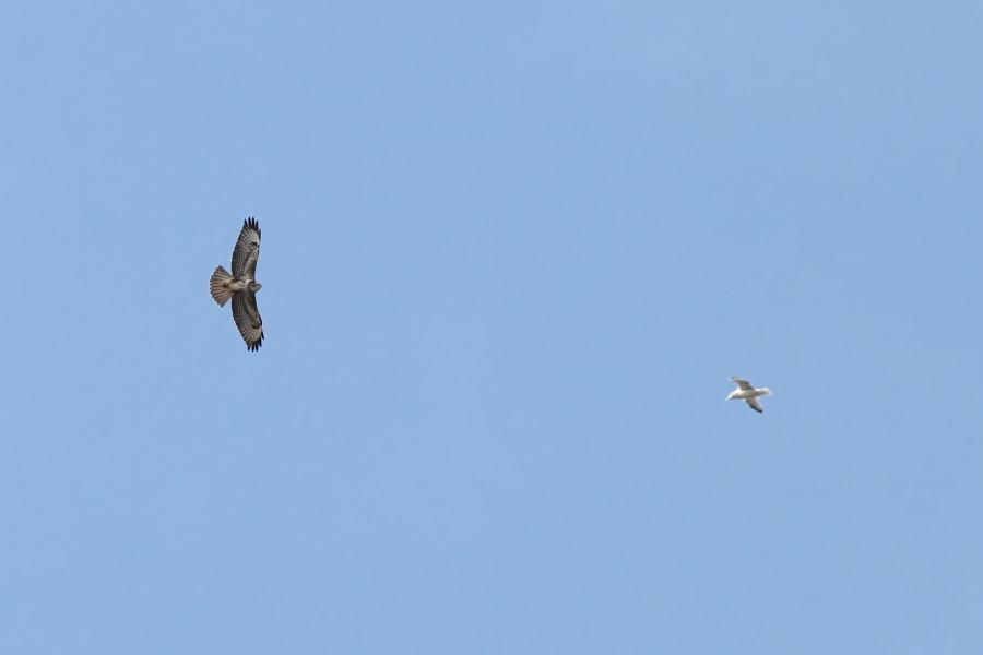 The perspective is slightly deceptive, but compare the buzzard with the gull