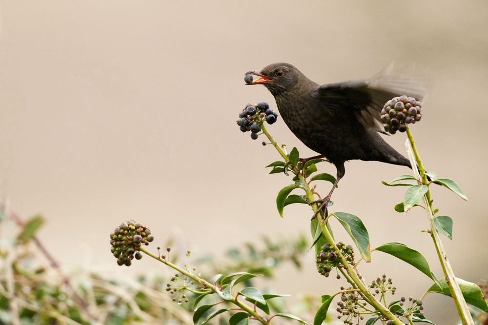 Blackbird eating a berry