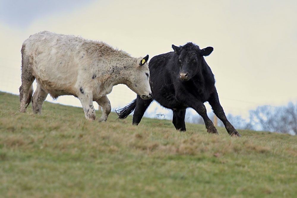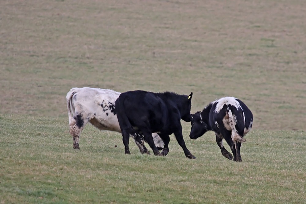 Well, jousting or rutting anyway (if cattle 'rut'). The local cattle are usually such placid beasts, so I was vaguely bemused when I saw them rushing around. I expect it of sheep, deer, and horses; but for some reason cattle running is something I can't remember seeing before (except in cowboy films). Okay, it wasn't a stampede, but it caused me to stop and watch for a while.