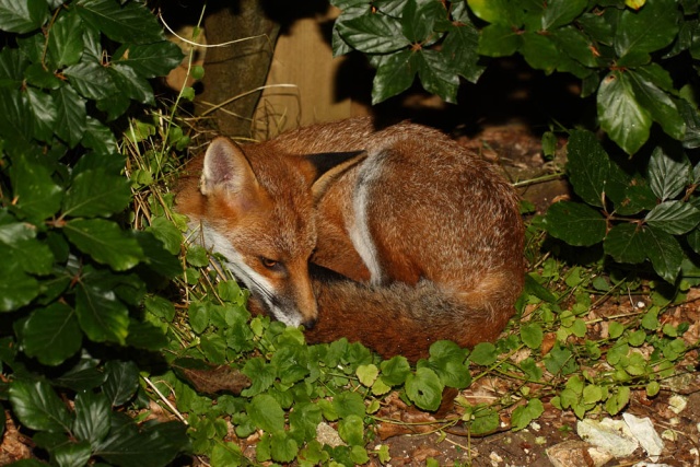 4. Adele, in the last couple of shots she's settled down under the shrubs to keep out of the rain. The beech hedge makes a nice canopy for her.