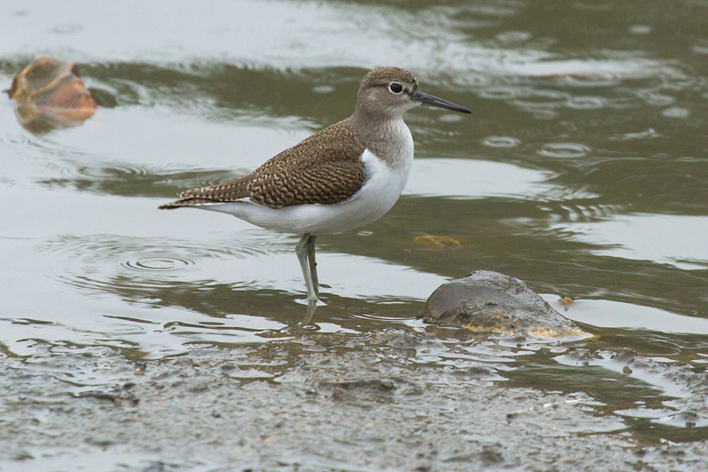 The common sandpiper isn’t all that common a sighting at Falmer Pond. They show up occasionally in ones and twos, but they tend to be more at hope on larger expanses of water. The pond doesn’t offer much in the way of shallow wading, especially for such small birds. They are also quite timid, and will take off for the cover of low hanging bushes and trees as soon as they notice any movement.