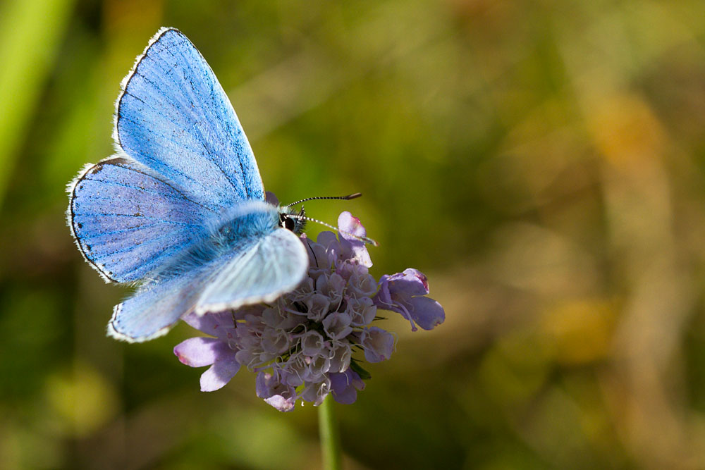 There are several walks here. You can take a circular route along the top of the hill, or cut down into the valley. I chose the latter as I was keen to see what butterflies were around, and the valley is a perfect habitat for them. My timing was less good, and really I should have been here a couple of weeks ago when I suspect the variety and numbers would have been much higher. That said, there were plenty of meadow browns, small and large whites, an utterly evasive brimstone, and a good number of these tiny things: the adonis blue.