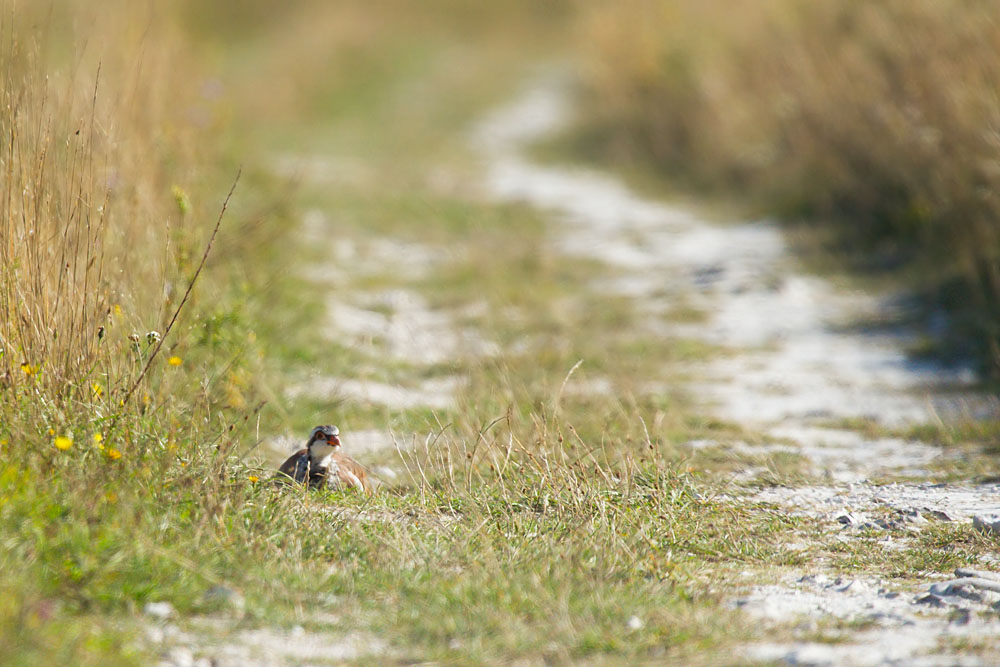 As for birds, I spotted several kestrels, and a buzzard being chased by a crow. The highlight though was a red-legged partridge.