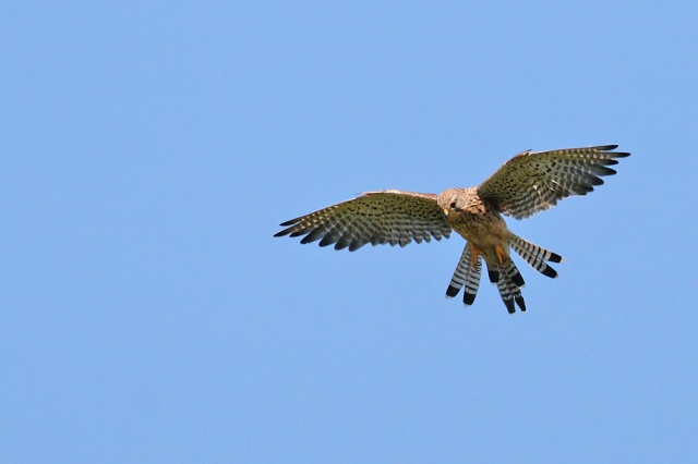 About the only other shot I got today (the garden is unbelievably quiet!) was of this female kestrel at lunchtime. She seems be be re-growing tail feathers, not that it proved any hindrance to her.