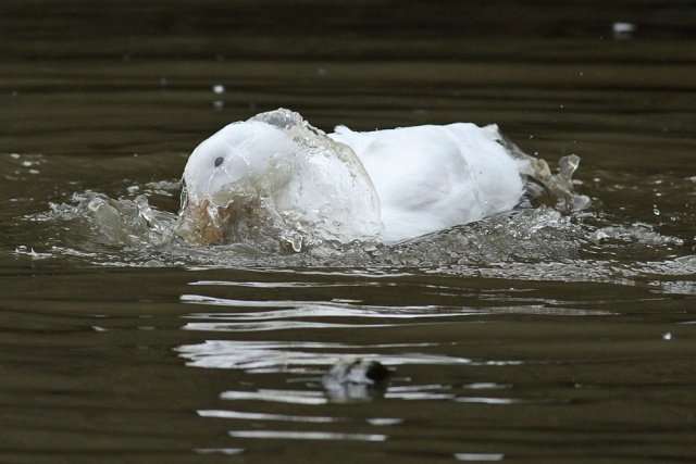 I'll start tonight's blog with a trio of pictures of one of the white (Aylesbury?) ducks that are recent arrivals at Falmer pond. There's a pair, and this one has the more distinctive pink bill. It was 'ducking' in the water, adopting various stylish fashion modes, such as…