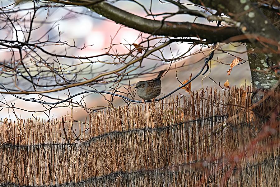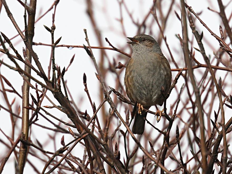 The dunnock (or Hedge Accentor, to give its other name) spends most of the time flitting between low shrubs which offer excellent camouflage. A pair have taken up residence in the garden, and were out enjoying a brief break in the weather this morning.
