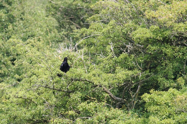 This last shot has me puzzled. I saw it in the distance, sticking out of the treetops. Judging size is always difficult, but it just doesn't look right for a crow. Is this a raven?