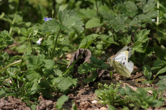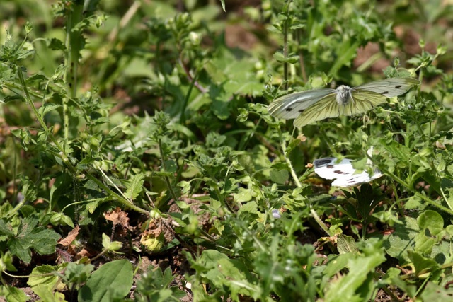 During the morning a sparrowhawk flew overhead (I could see it from my window), and the wagtails were hopping along the ornamental pond. But it was the butterflies and corvids that caught my eye at lunchtime. Precious little else was venturing out into the heat. I think these are large whites.