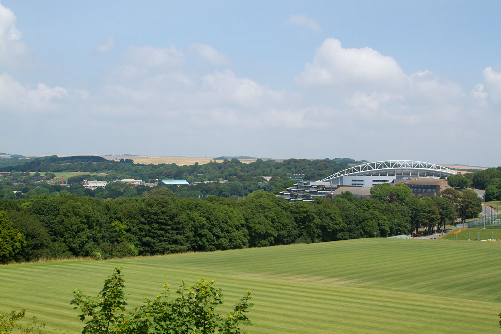 The closing photo was taken towards the end of the walk, as I was heading back down from the hills. To the right you can see the curved roof of the Amex Stadium (Brighton and Hove Albion’s home), the University of Brighton campus (and my office) is just to the left of it; and in the distance is the University of Sussex. Everything beyond is part of the South Downs National Park.