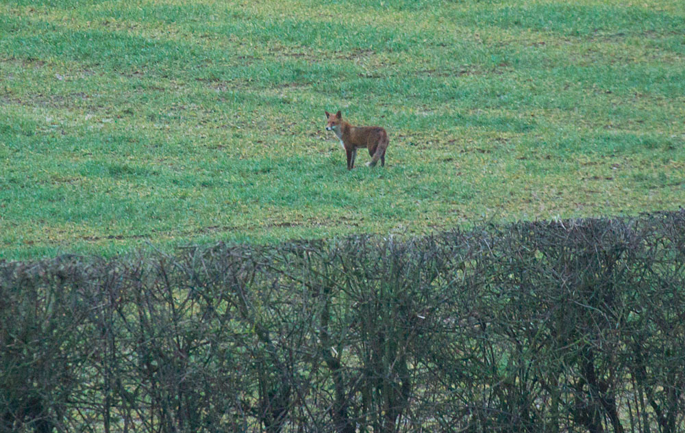 It’s not often I see foxes there, though they are around. It’s just that rural foxes are much more wary than the semi-urban ones that visit the garden. She stood and watched me for a few moments, before turning away and heading back across the open farmland.