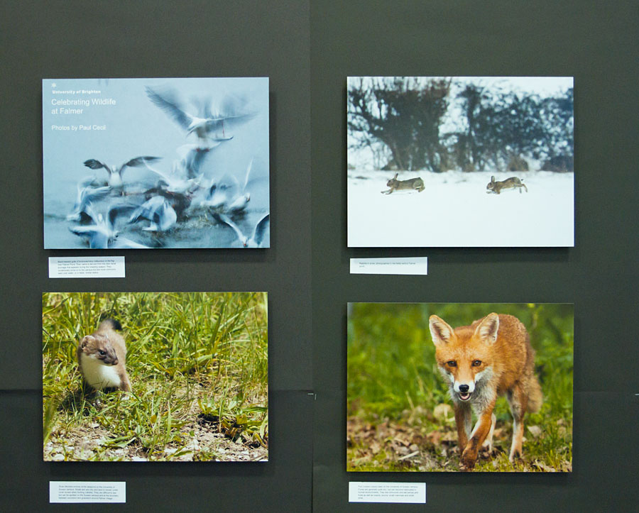 Meanwhile, back at work, a small exhibition of some of my photos celebrating wildlife at Falmer went on display. They are part of the University’s ‘Green Week‘ (The University of Brighton is in the top 5 of the University Green League). The aim is to raise awareness of the rich variety of wildlife on our doorstep. It’s been enjoyable pulling together the set of photos and it’s the first time I’ve seen most of them anywhere other than on a computer screen.