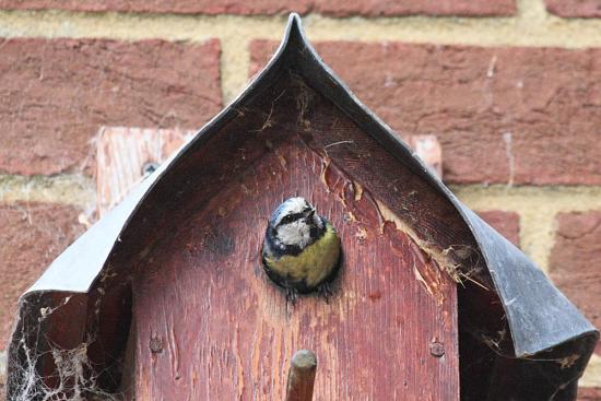 Then it was down to see the bird boxes. This one has a resident family of blue tits.