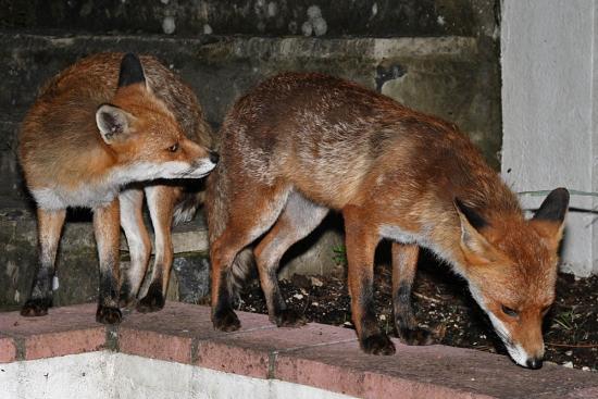 In fact I didn't see any foxes on Friday at all. But just as the clock ticked over into Saturday I looked outside and saw the old dog fox accompanied by the bold vixen. These two seem to be taken with each other ;). They were together on Thursday night, as well as on numerous other occasions recently. I had the wrong lens on the camera on Thursday, so struggled to get decent shots. I was better prepared today.