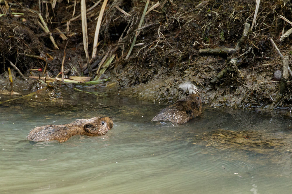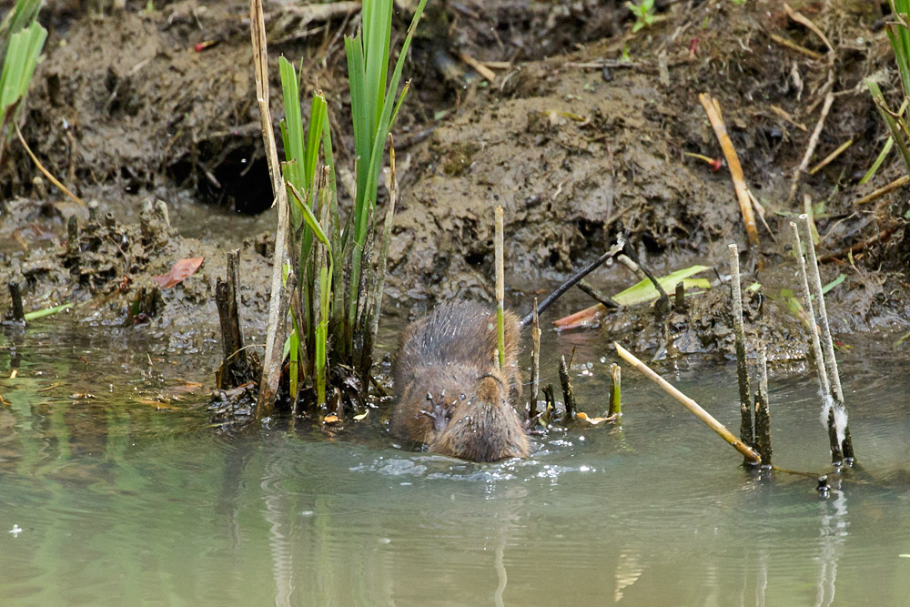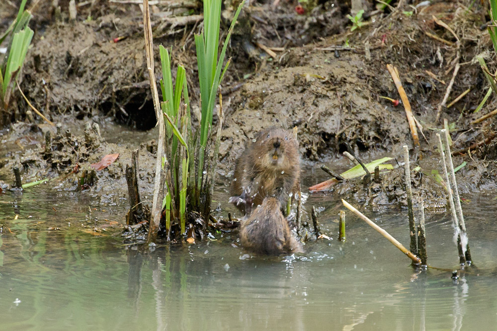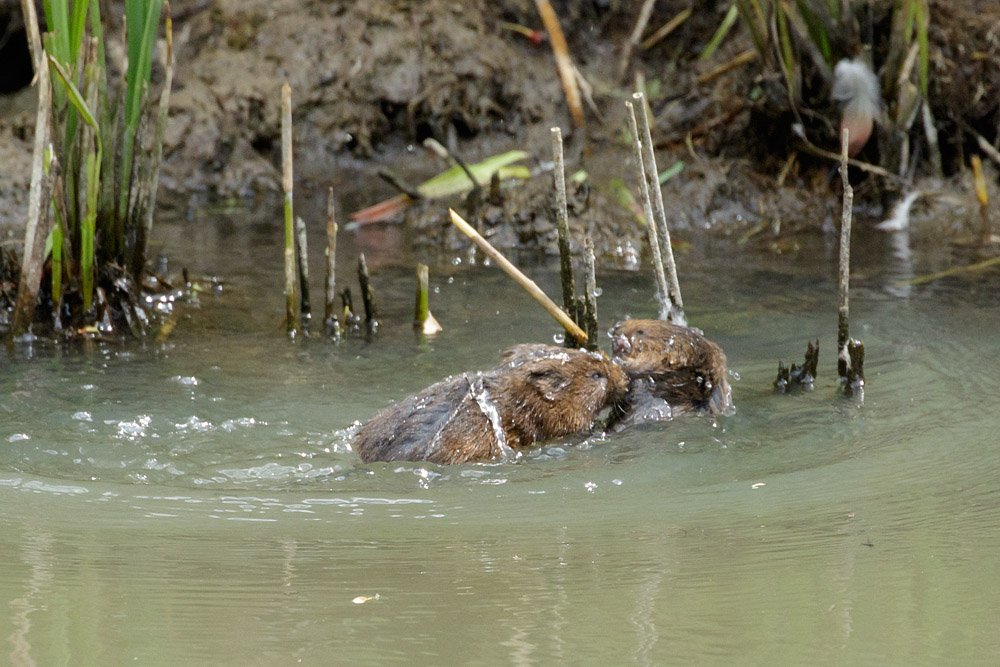Just a short sequence of photos tonight, taken at the Wildfowl and Wetlands Trust in Arundel today. Several water voles were active at the edge of the site (by the entrance to the visitor centre), and their antics included a brief skirmish in the water. Not my best photos – but unusual enough to put up here.