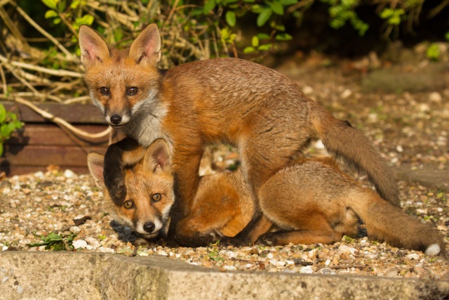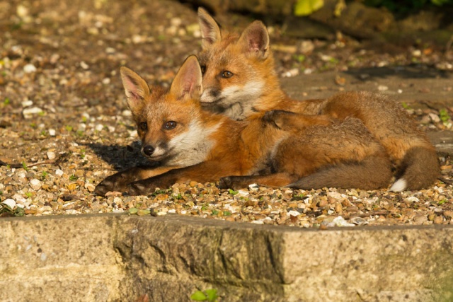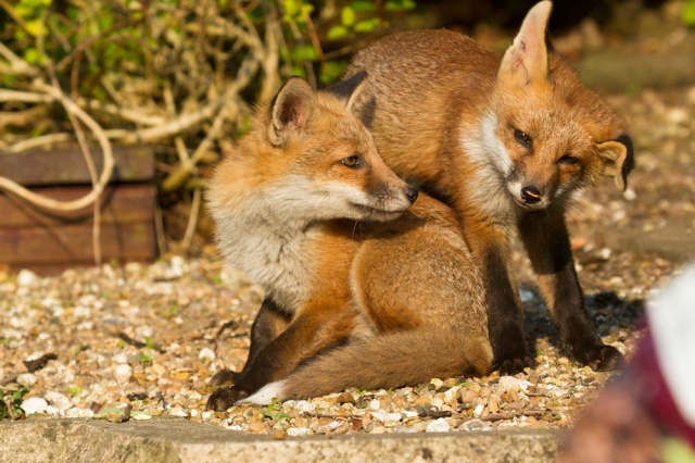 The rest of today's entry is (surprise, surprise!) devoted to the fox cubs. A pair of them came out late afternoon, just after I'd finished tidying away a large pile of loppings. I took a stupid number of photos of them, but these ones caught my eye on my quick flick through what I'd got.