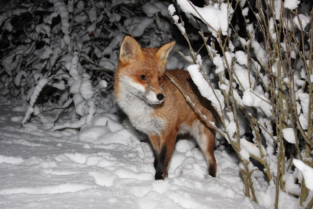 Moving on to 2010 I finally managed to get a long wished-for photo of a fox (actually a young vixen) against a snowy background…
