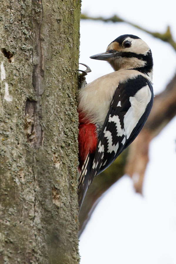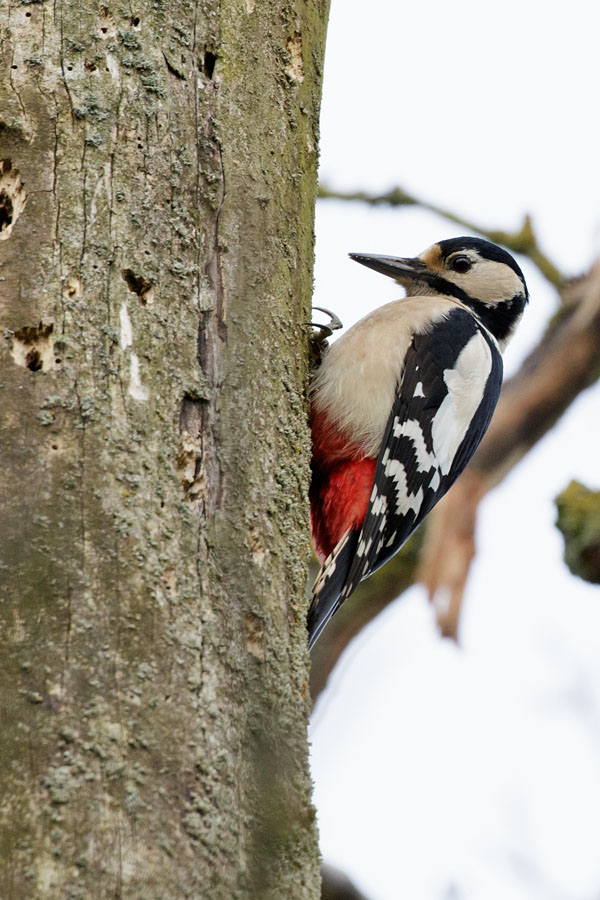 The second reason for wanting to blog today is that I caught a glimpse of our local great spotted woodpecker. It lives at the edge of the car park at work, and is just beginning to get active. I’ve previously photographed its chicks, and with luck I’ll be able to do the same over the coming weeks/months. These shots are the female, but I’m sure her mate is around.