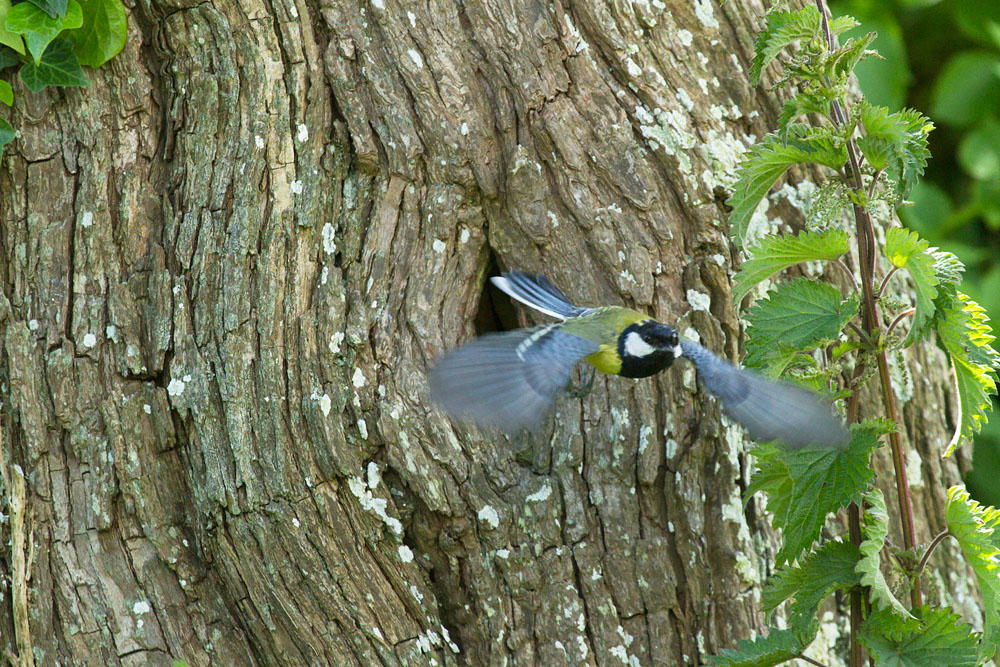 A simple sequence today, but one I’m genuinely really pleased to get. I’d noticed this particular site, and the hole in the tree, a week or so ago and wondered whether it was being occupied. Today I discovered that it was: by a pair of great tits, clearly with young mouths to feed. The pictures speak for themselves.