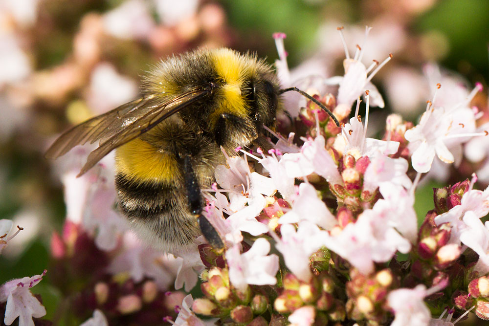 Not all of them are quite so greedy. This bee was enjoying a taste of wild marjoram.