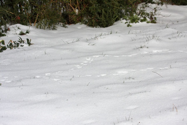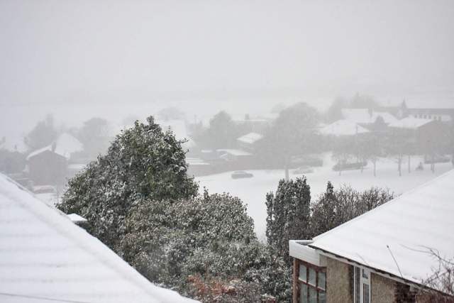 We had several hours of snow this morning. Well, to be fair some of it was hail which served to add some solid ice to the already frozen roads around here. This was the scene from the garden at around 9.30 am.