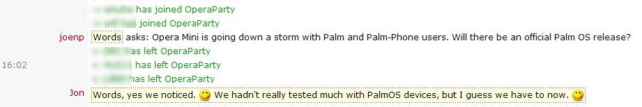 Words asks: Opera Mini is going down a storm with Palm and Palm-phone users. Will there be an official Palm OS release?