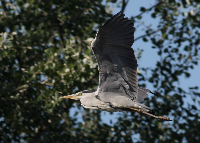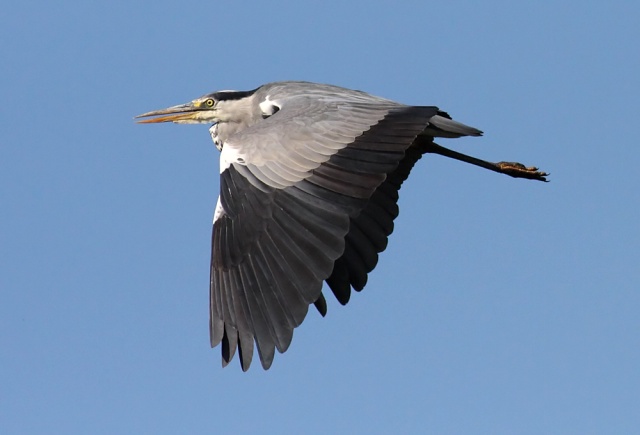 Funny how they fly with their necks folded up. It seems most birds stretch their necks out when flying.