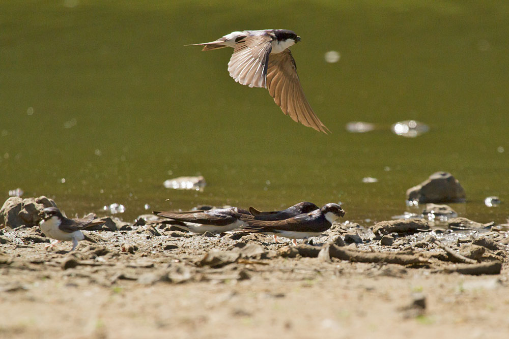That’s a very typical view of these agile and frenetic birds. They spend time sweeping the surface of the pond and then slowly gather in small groups on the fringes to take a breather and find easy pickings in the mud before getting in some more flying time.